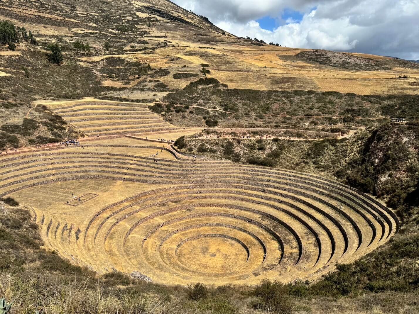 Depois seguimos para Moray, outro sítio arqueológico super famoso do circuito do Vale Sagrado Peru. Acredita-se que Moray era um laboratório agrícola, onde os incas testavam diferentes tipos de cultivo em microclimas variados. Eu achei muito linda a estrutura do sítio, formada por conjunto de terraços circulares em forma de anfiteatro.