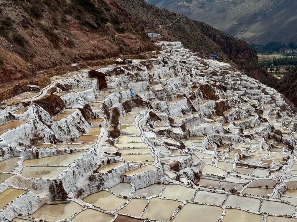 Pertinho de Moray está Maras, o meu lugar favorito do tour do Vale Sagrado Peru e um programa que precisa estar na sua lista de o que fazer em Cusco. Maras é um conjunto impressionante de mais de 3.000 salinas, exploradas desde a época inca. O sal extraído ainda é usado na gastronomia peruana e exportado para o mundo todo.